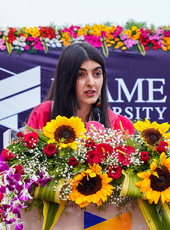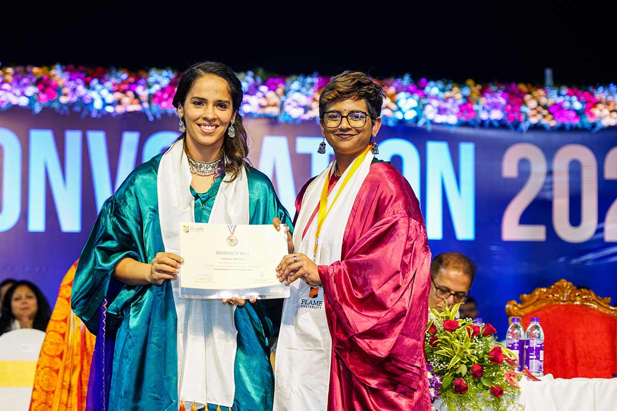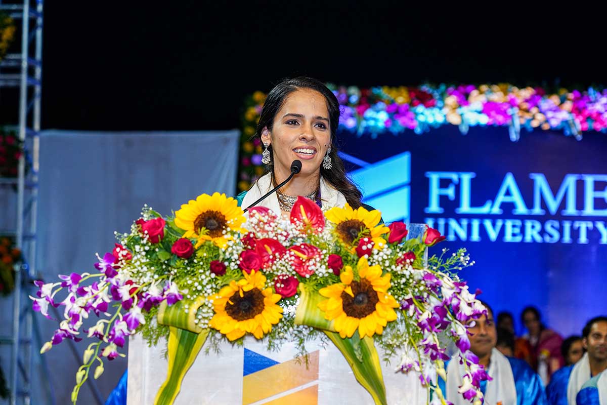 FLAME University held its 15th convocation ceremony on May 18, 2024, at the university campus. The ceremony saw the conferring of academic qualifications on both undergraduate and postgraduate students. Dr. Dishan Kamdar, the Vice-Chancellor of FLAME University, presided over the ceremony, along with members of the Governing Body, Board of Management, Academic Council, Pro Vice-Chancellor, Deans, faculty, and other members of the FLAME community. The ceremony was graced by Ms. Saina Nehwal, Olympic medalist, former World No. 1 badminton player, and currently ranked among India’s top athletes. During the event, the academic achievers of various programs were felicitated and presented with medals in recognition of their academic and overall achievements.